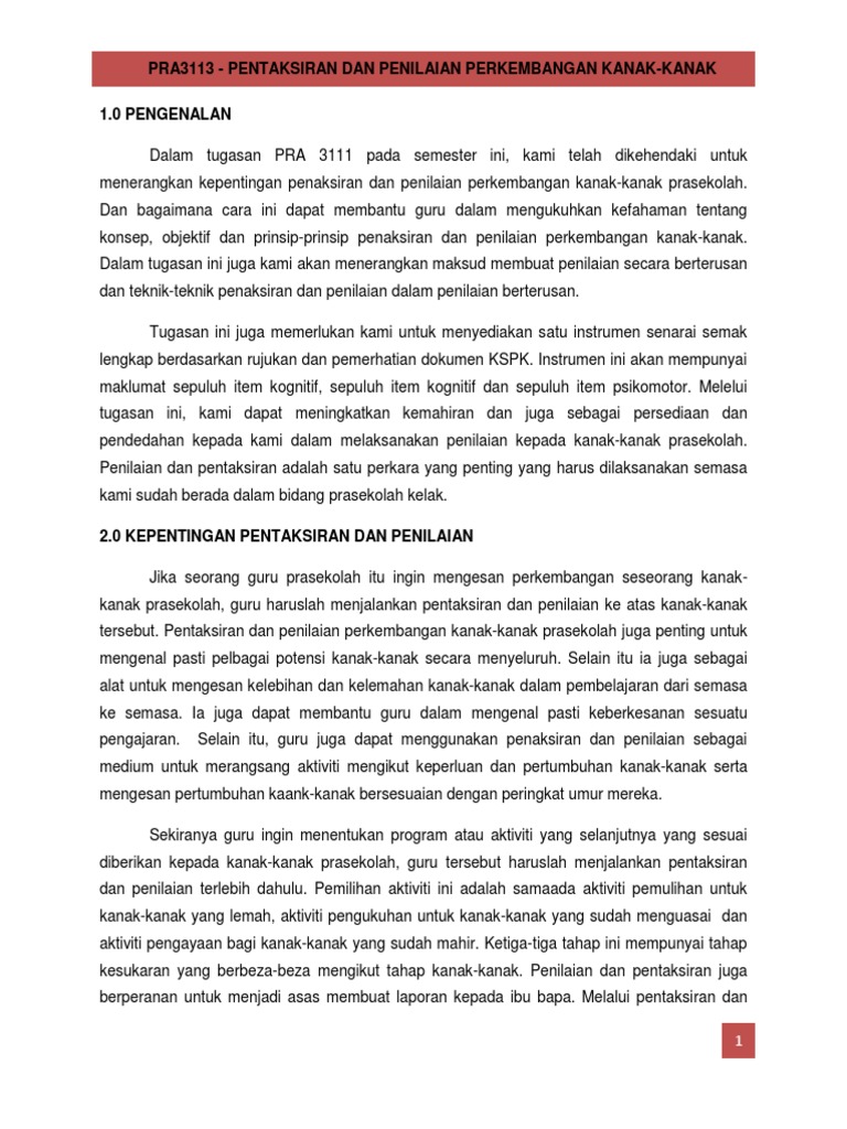 Pentaksiran Dalam Pendidikan Awal Kanak Kanak Pdf